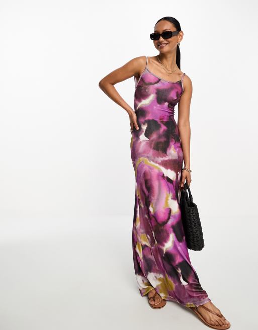 ASOS DESIGN strappy slinky maxi dress in purple abstract print Very well made.