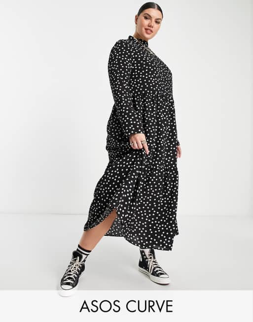 ASOS DESIGN Curve high neck tiered midi dress in mono spot print Very well made.