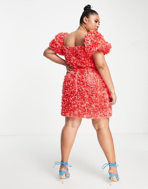 ASOS LUXE Curve 3D floral puff sleeve cupped mini dress in red Very well made.