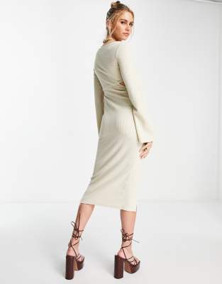 ASOS DESIGN ribbed cut out button detail midi dress in cream Very well made.
