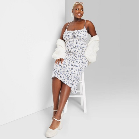 Women s Sleeveless Ruched Midi Dress Wild Fable White Floral 4x Very well made.