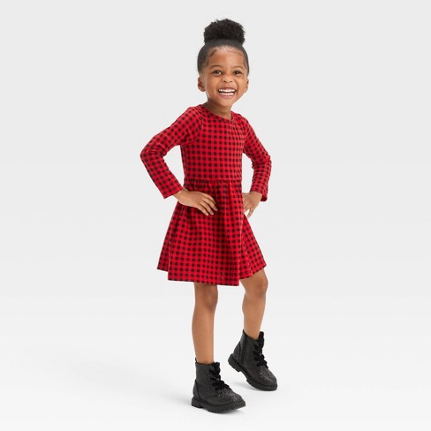 Toddler Girls Checkered Long Sleeve Dress Cat Jack Red 4t Very well made.