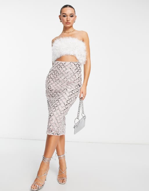 ASOS DESIGN faux feather embellished sequin two piece midi dress in blush Very well made.