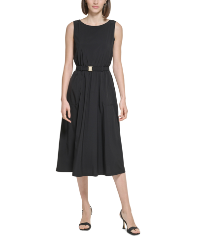 Calvin Klein Women s Belted A line Midi Dress In Black ModeSens Very well made.