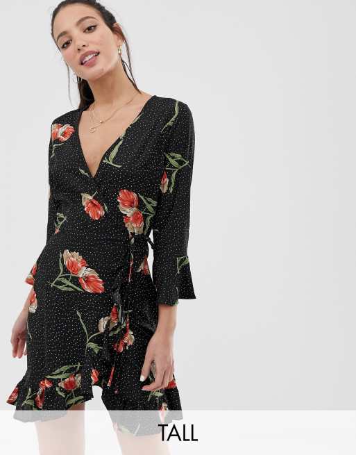 Influence Tall Floral And Polka Dot Frill Wrap Dress ASOS Very well made.
