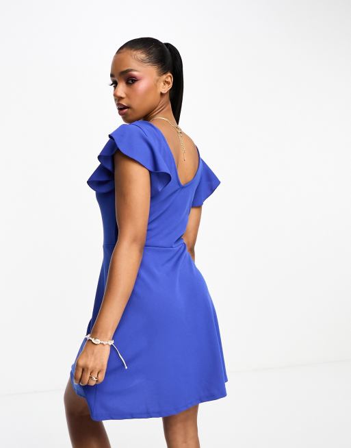 JDY ruffle sleeve mini skater dress in bright blue ASOS Very well made.