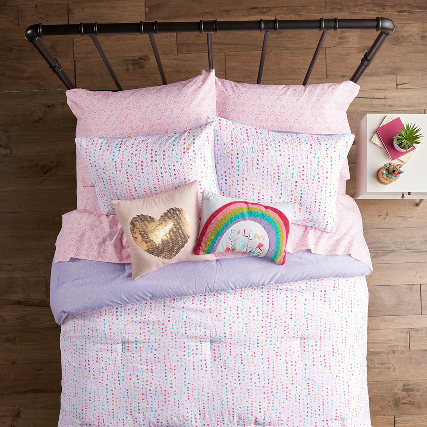 Under The Stars Rainbow Dot Complete Bedding Set with Sheets Very well made.