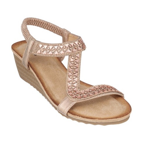Gc Shoes Dua Rose Gold 7.5 Embellished Slingback Wedge Sandals Very well made.
