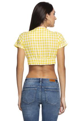Womens V Neck Check Tie Up Crop Top Very well made.