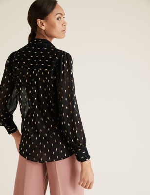 Polka Dot Pussybow Puff Sleeve Blouse M S Collection M S Very well made.