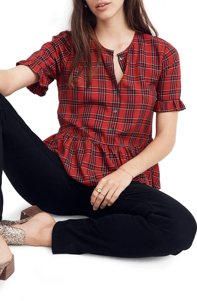 Madewell Studio Plaid Ruffle Hem Top In True Red ModeSens Very well made.