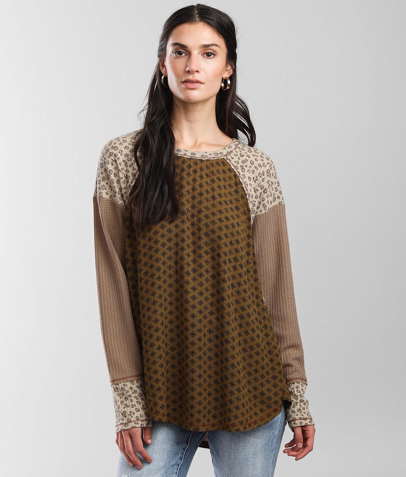 mystree Mixed Print Top Women s Shirts Blouses in Olive Buckle Very well made.