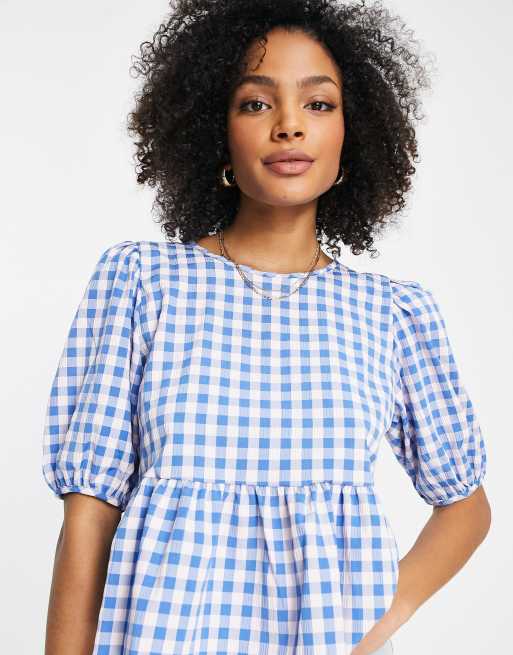 JDY puff sleeve peplum top in blue gingham check ASOS Very well made.