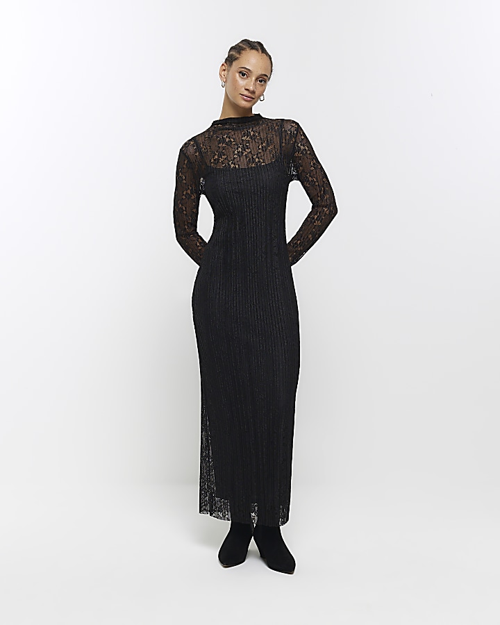 Black lace slip midi dress Very well made.