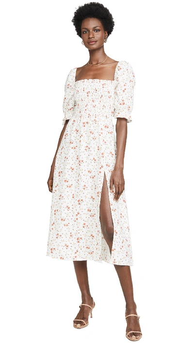 Reformation Marabella Shirred Floral print Linen Midi Dress In Very well made.