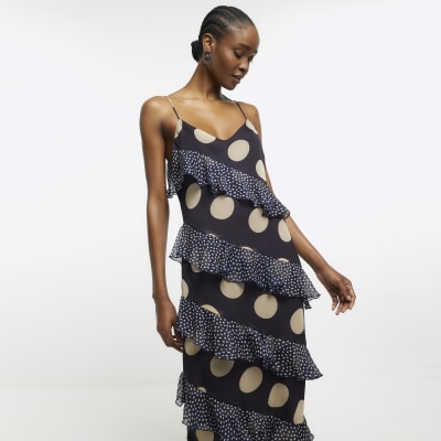 Navy polka dot ruffle maxi dress River Island Very well made.
