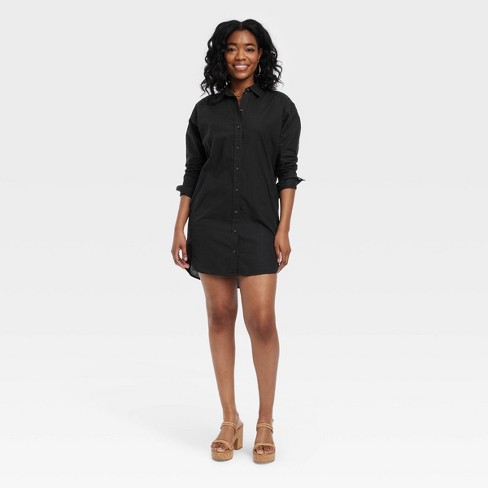 Women s Long Sleeve Mini Shirtdress Universal Thread Black S Very well made.