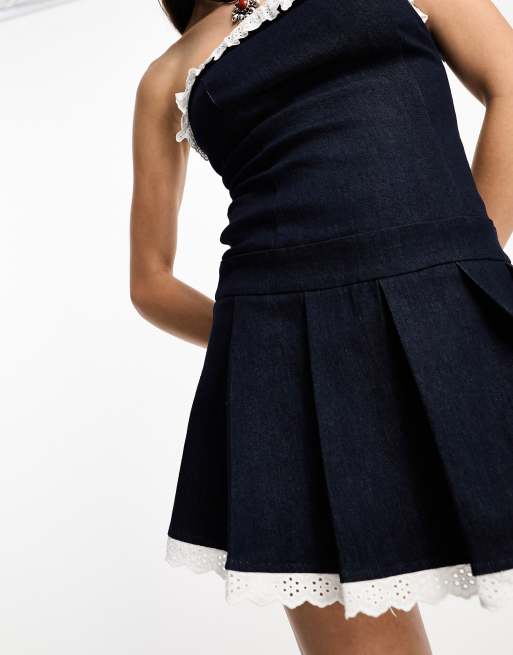 Motel bandaeu kilt mini dress in chambray indigo ASOS Very well made.