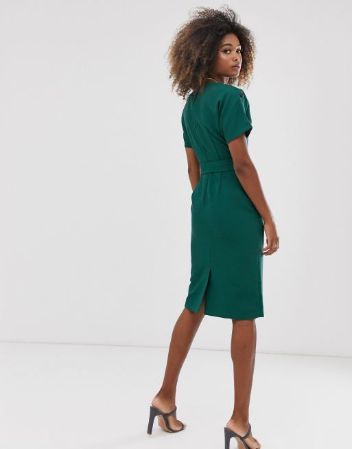 Warehouse crinkle dress with belt in green Very well made.