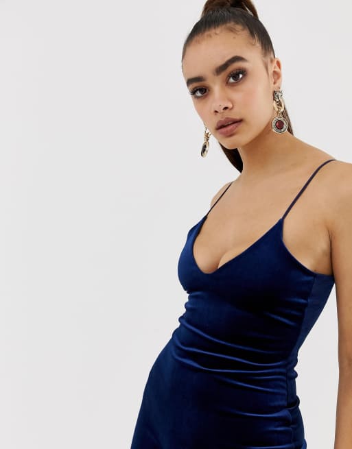 Missguided velvet strappy midi dress navy Very well made.