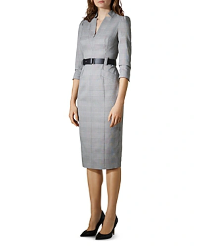 Karen Millen Belted Check Pencil Forever Dress Size 12 Black Very well made.