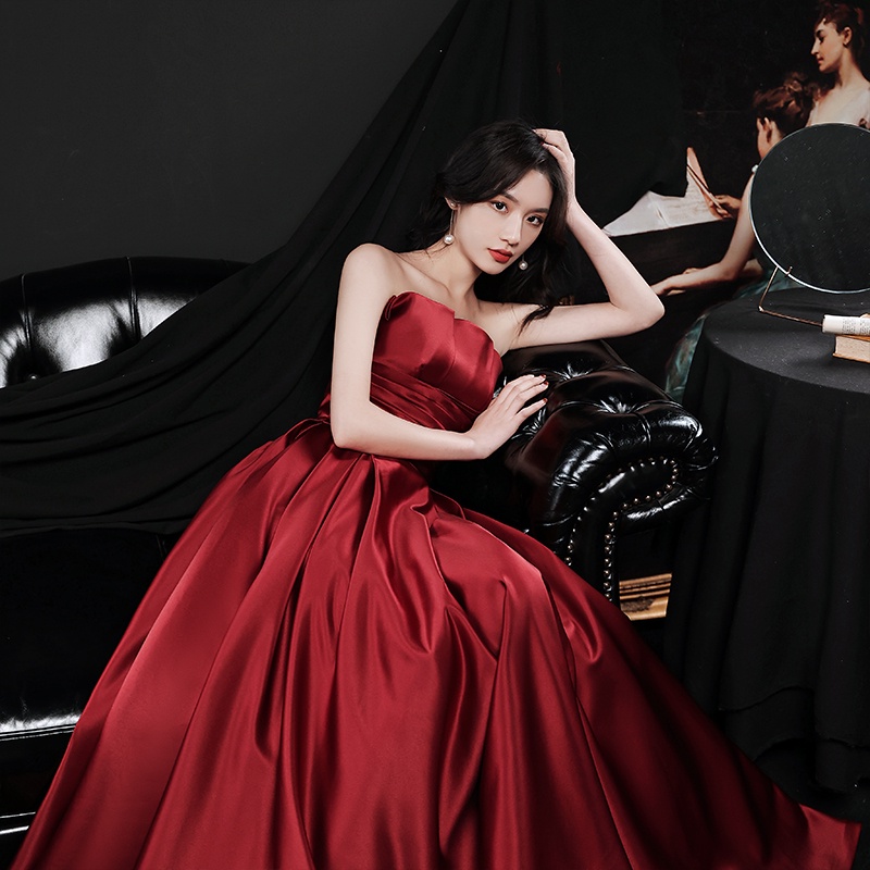 Wine red satin dress skirt female 2021 new banquet Very well made.