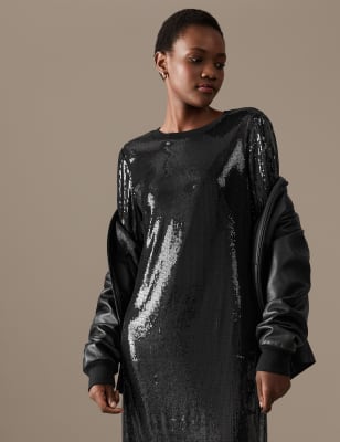 Sequin Round Neck Midi T Shirt Dress Very well made.