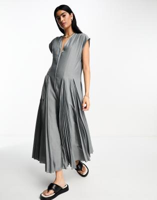 ASOS DESIGN v neck trapeze midi dress with pleated godet hem in Very well made.
