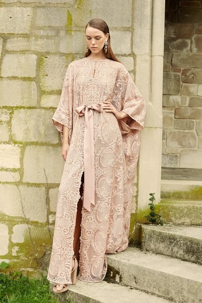 Marchesa Split Neck Re embroidered Lace Caftan In Pink ModeSens Very well made.
