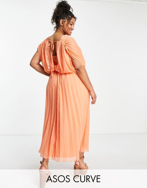 ASOS DESIGN Curve pleated wrap front midi dress in coral Very well made.