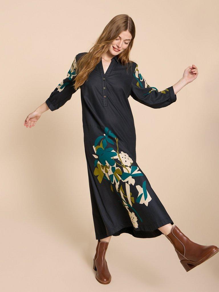 WHITE STUFF Poppy Organic Cotton Embroidered Midi Dress in Black Very well made.