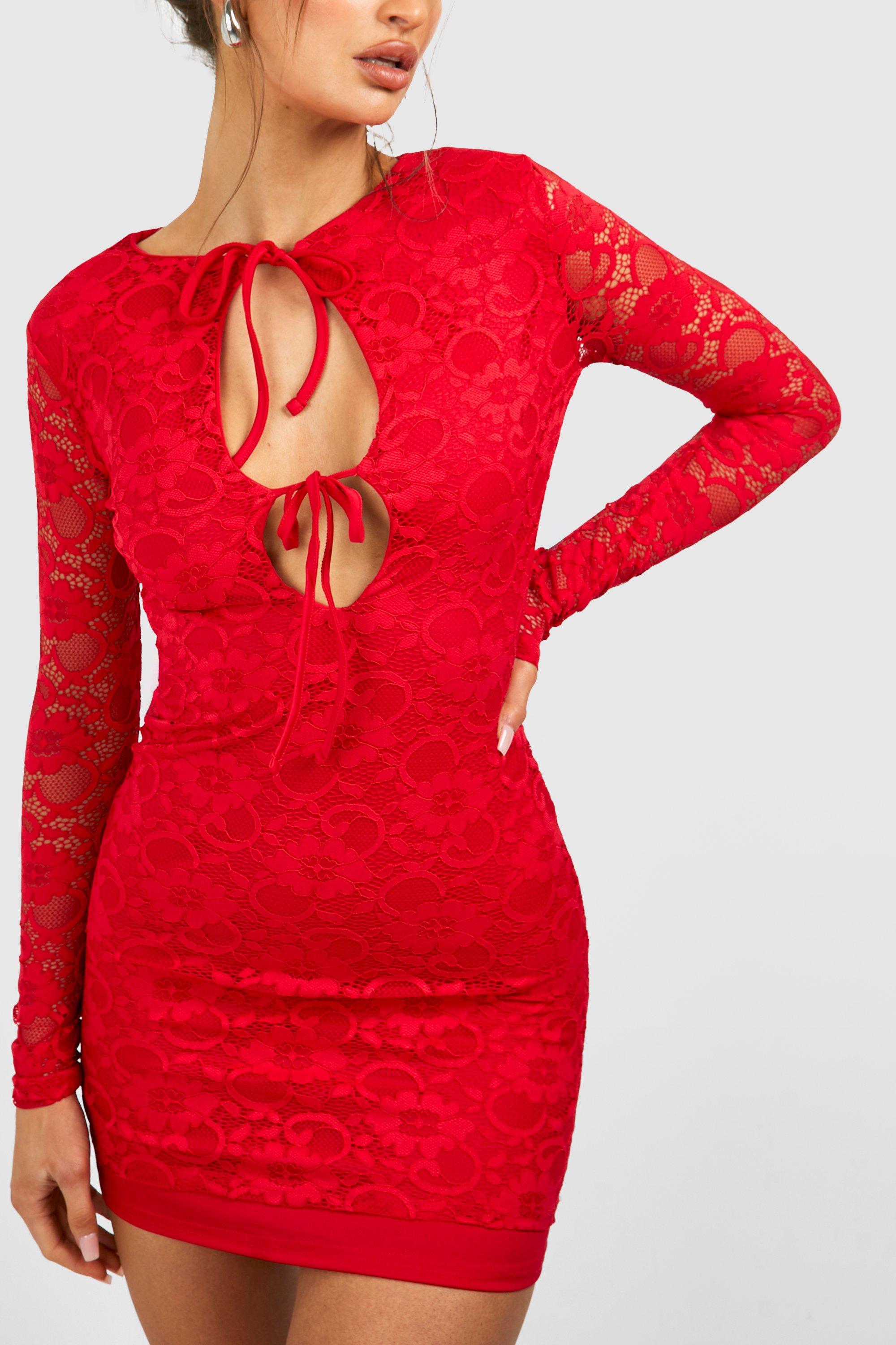 Cut Out Tie Front Lace Mini Dress Very well made.
