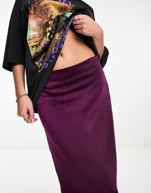 Only satin slip midi skirt in deep purple Very well made.