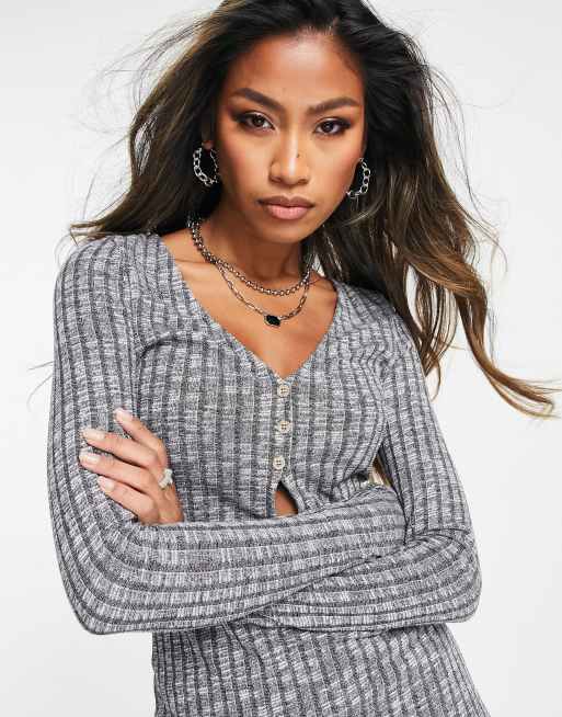 ASOS DESIGN ribbed long sleeve mini dress in grey space dye ASOS Very well made.
