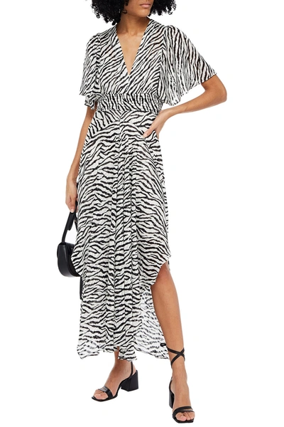 Maje Rachelle Shirred Zebra print Jacquard Maxi Dress In Black Very well made.