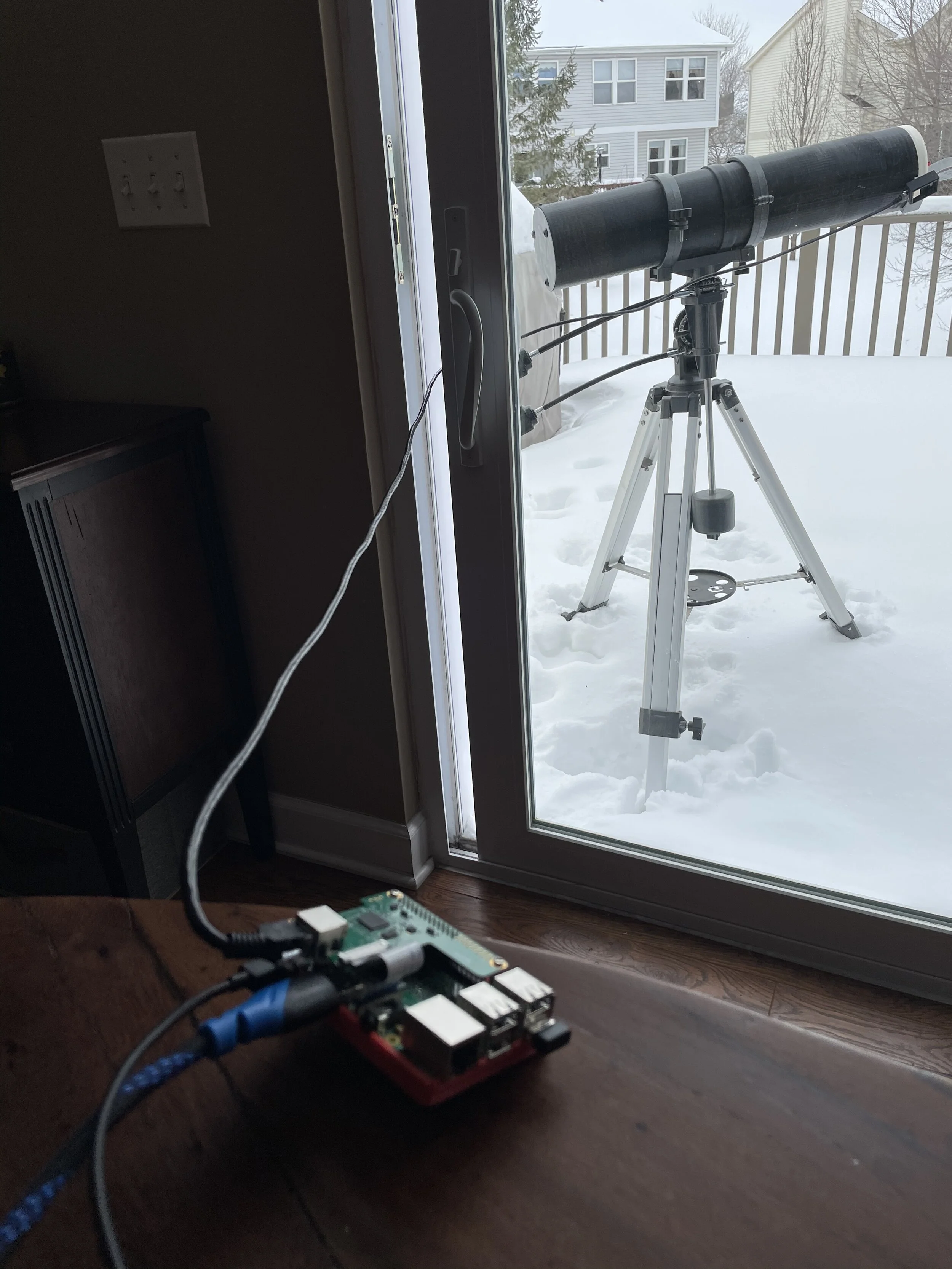 Raspberry Pi model 4 Pi Camera V2 fitted on the telescope of a Very well made.
