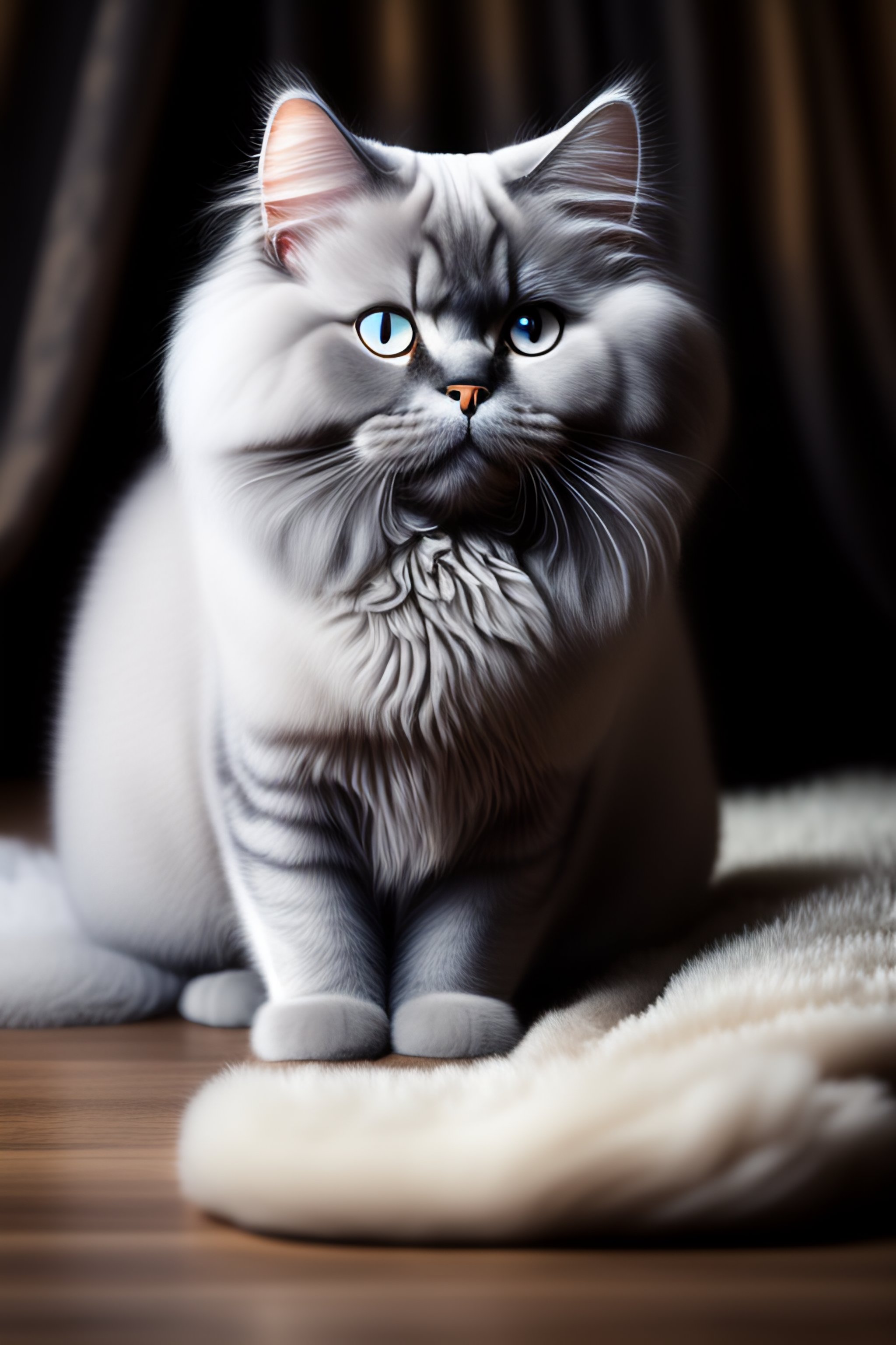 Lexica A light grey persian cat with black nose is sitting on Very well made.