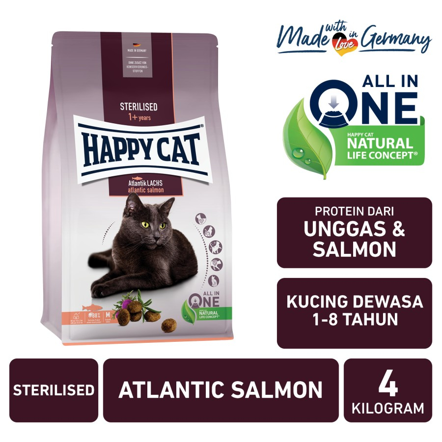 Jual HAPPY CAT ADULT STERILISED ATLANTIK LACHS SALMON 4KG Very well made.