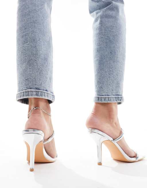 Glamorous Wide Fit two strap mule heeled sandals in silver ASOS Very well made.