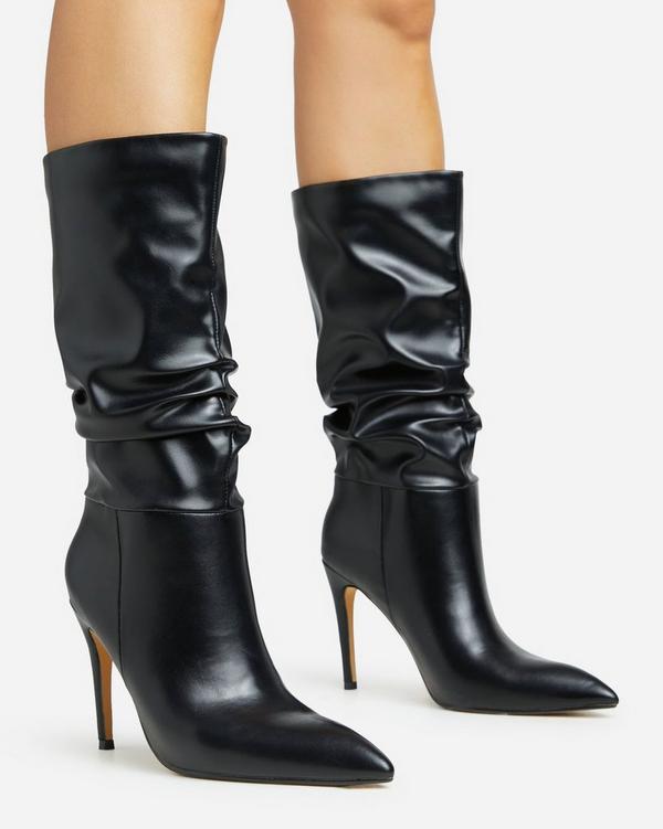Women s Slouchy MID Calf Boot Slip on Style Ruched Stiletto Boots Very well made.