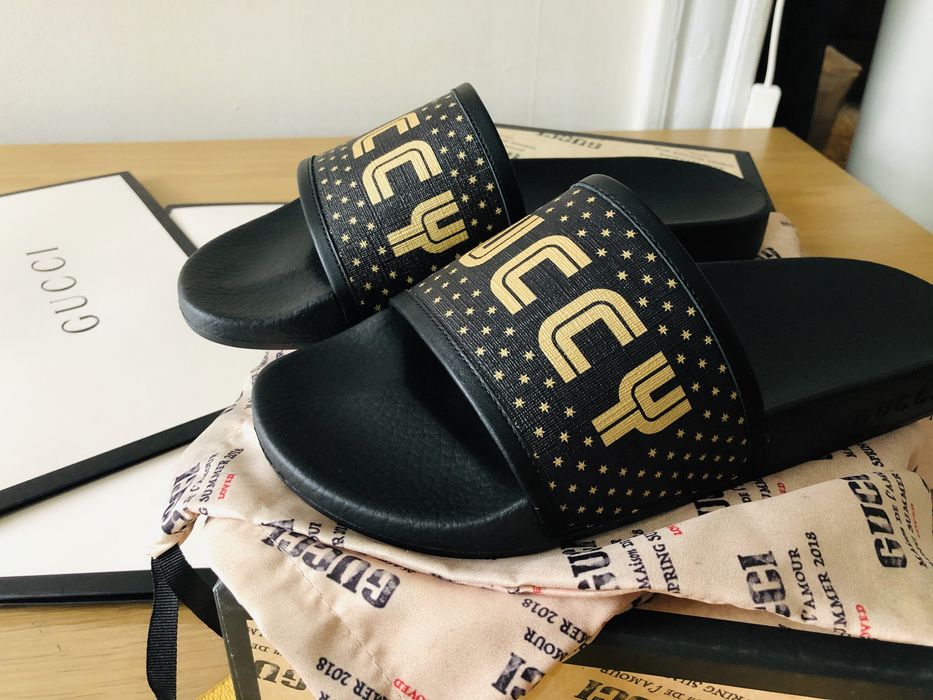 Gucci Gucci Black Pursuit Guccy Star Print Slides Grailed Very well made.