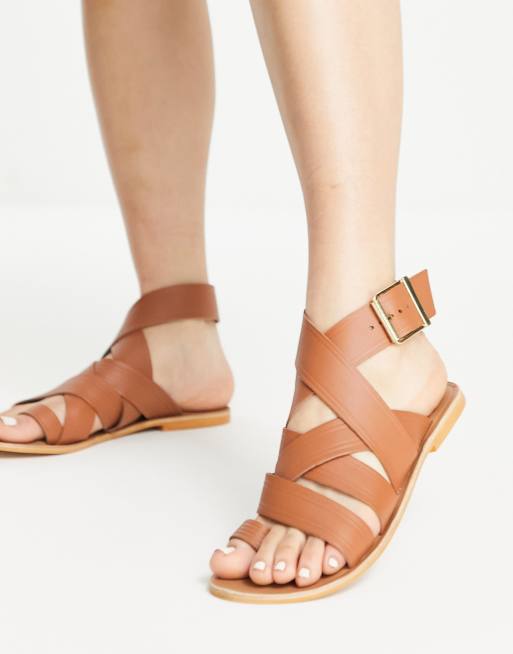 ASOS DESIGN Fudge leather flat sandals in tan Very well made.