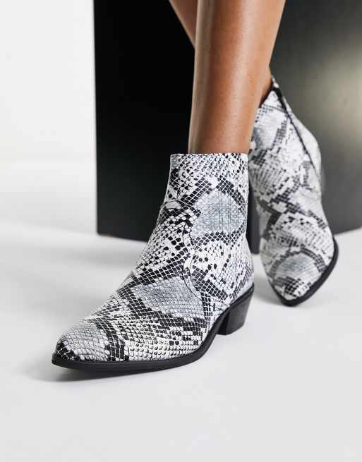 Glamorous mid heel ankle boots in mono snake print Very well made.