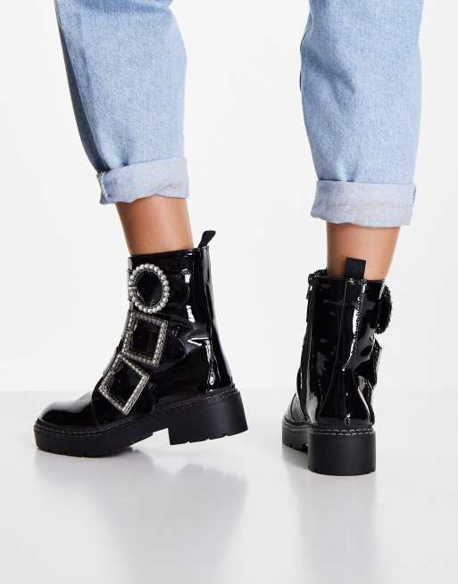 River Island rhinestone buckled flat boot in black Very well made.