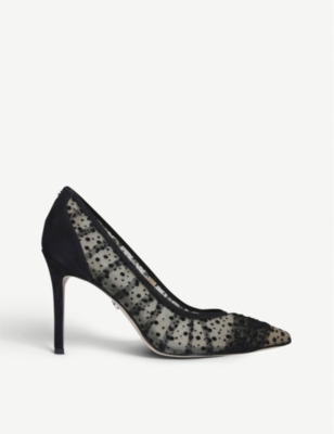 SAM EDELMAN HAZEL Deep Burgundy Dotted Mesh heels size 8 W Wide Very well made.