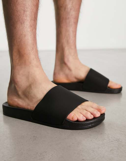 Truffle Collection wide fit faux leather sliders in black Very well made.
