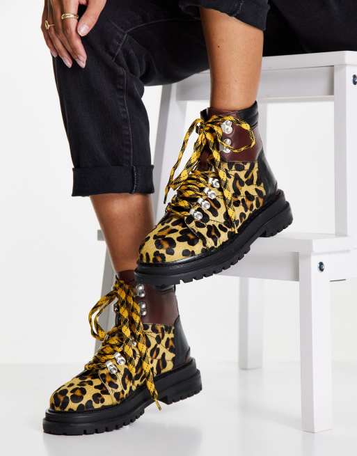ASOS DESIGN Adrift chunky lace up hiker boots in tan and leopard mix Very well made.