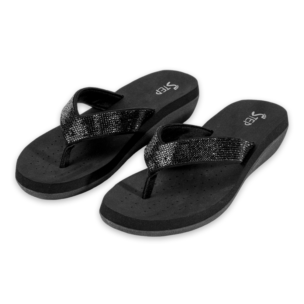 Step PU Leather With Stone Flip Flop Sandal For Women Black Very well made.