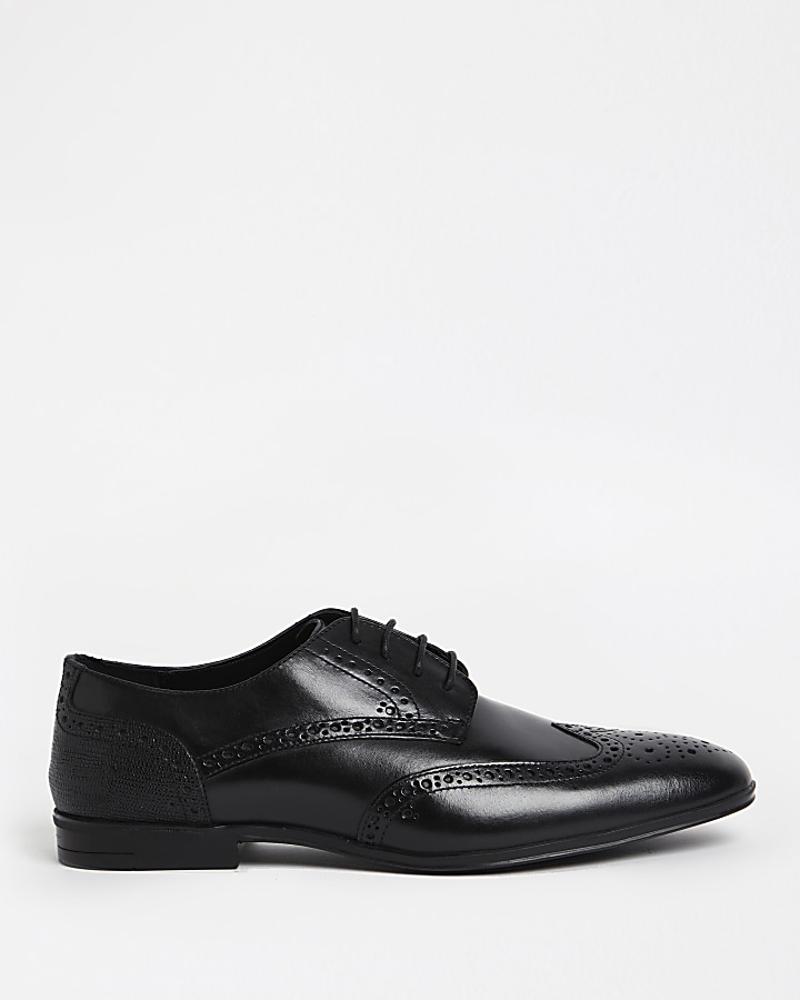 Black leather lace up brogue derby shoes Very well made.