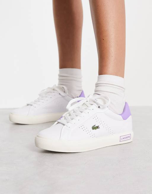 Lacoste Powercourt 2.0 white leather trainers with purple back tab Very well made.
